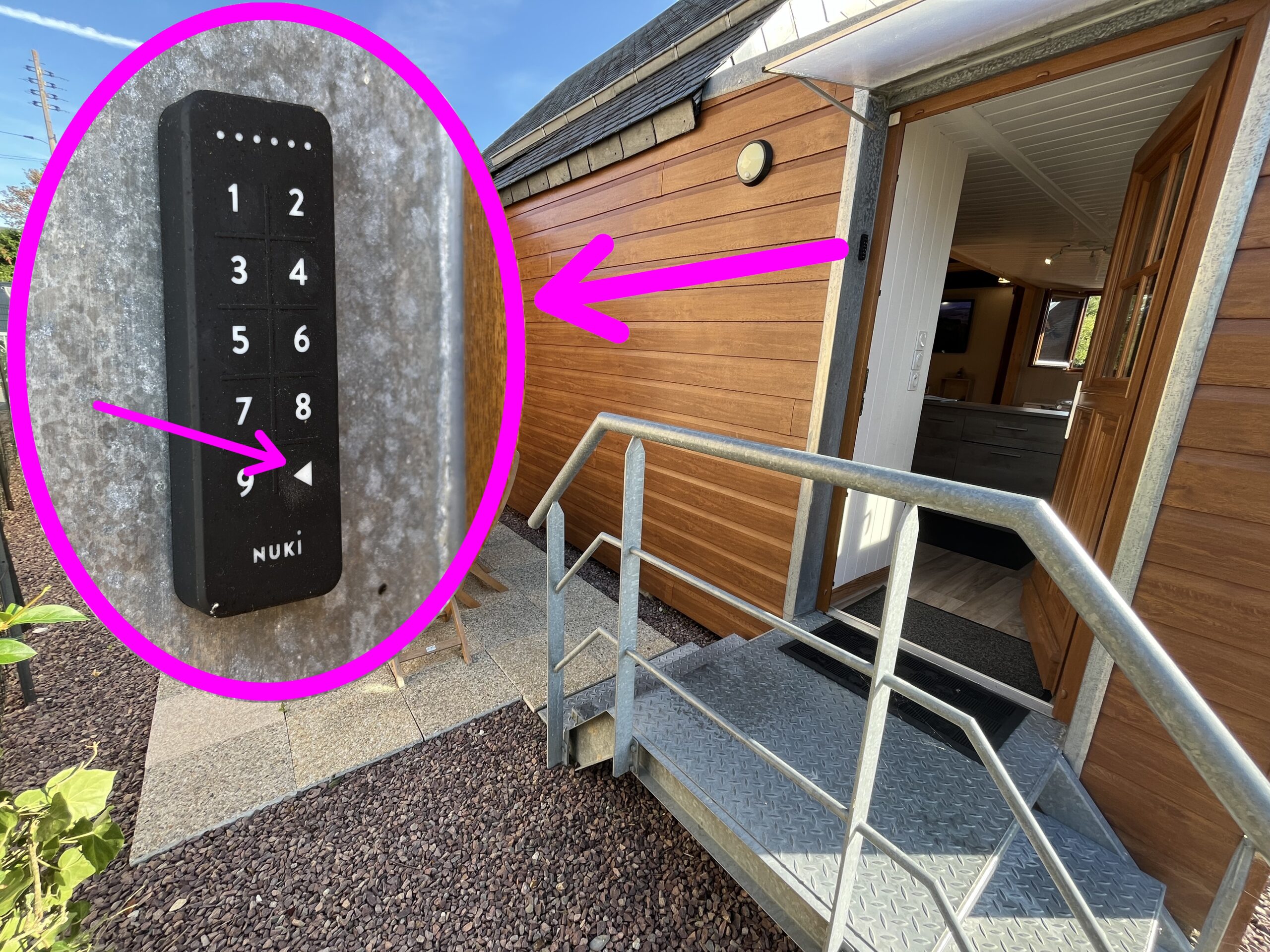 ➡️ Pour fermer la porte à clé en sortant, appuyez simplement sur la flèche vers la gauche ⬅️ située en bas à droite du clavier, comme indiqué sur la photo 📸