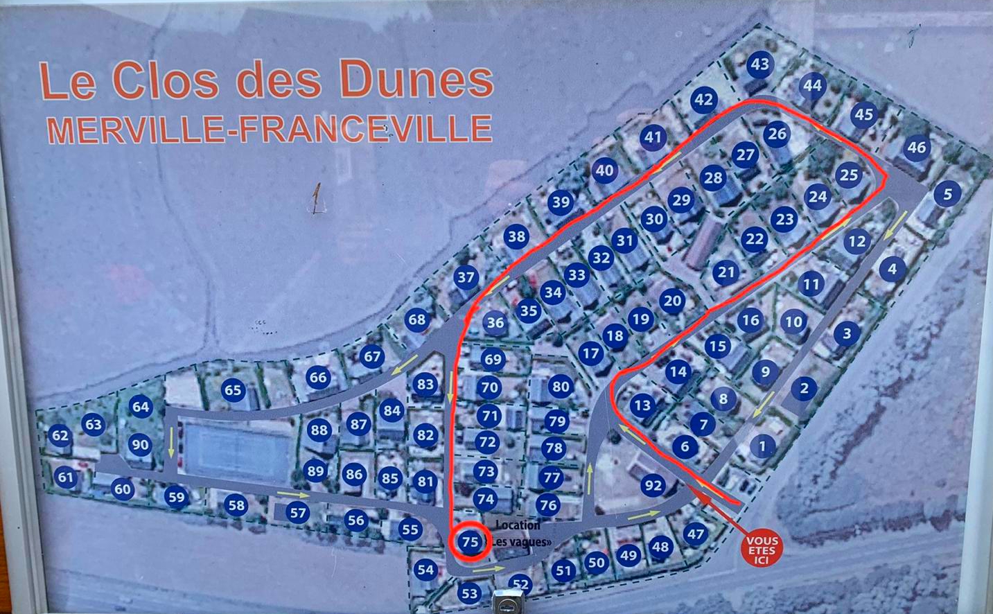 ➡️ Pour accéder au chalet 75, suivez la flèche sur ce plan, la route à sens unique 🚗