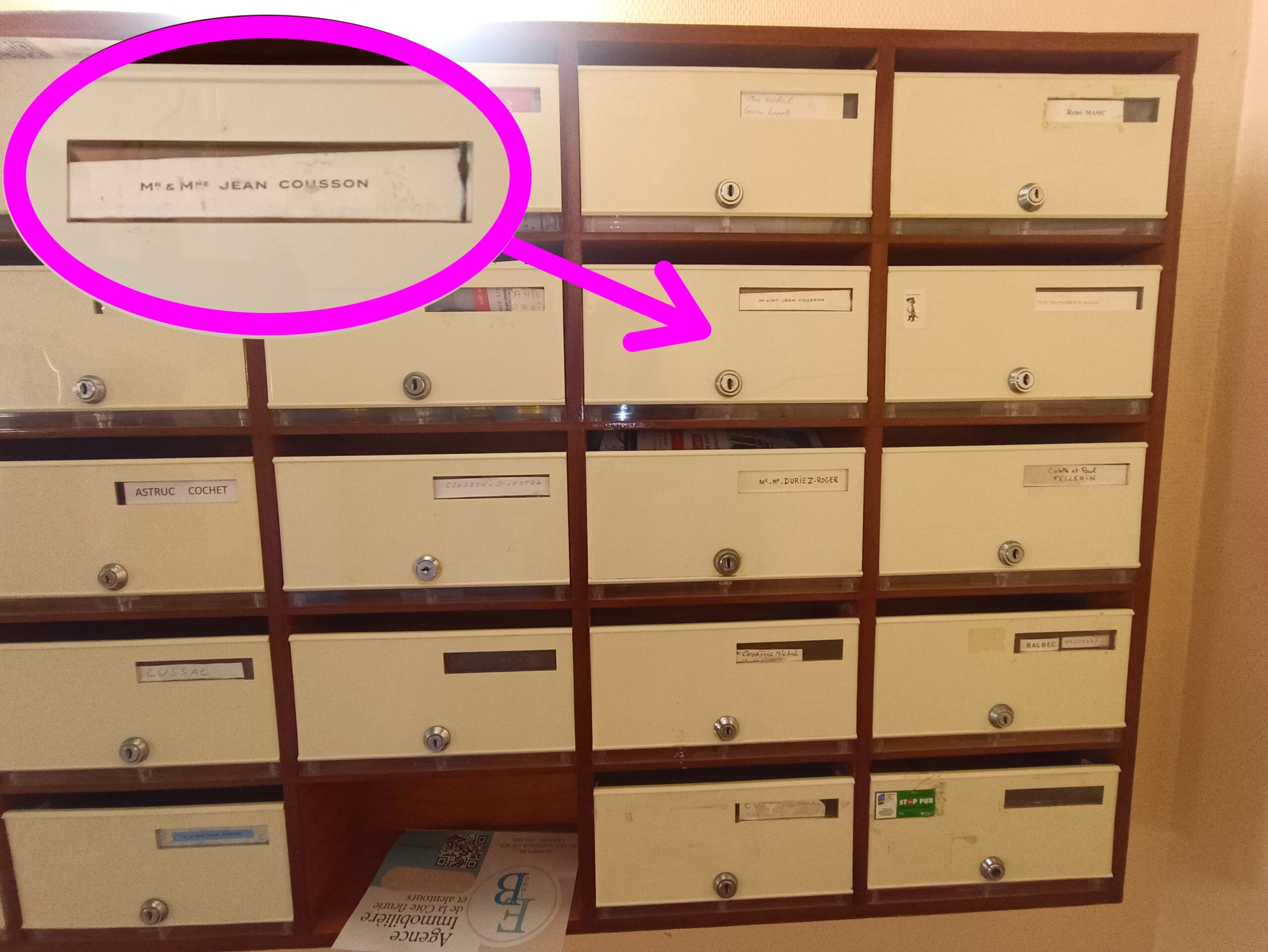 📬 Juste à droite de l’entrée se trouve la boîte aux lettres. À l’intérieur, vous trouverez la boîte à clés 🔑. La boîte aux lettres n’est pas fermée, vous pouvez donc l’ouvrir directement. Le nom indiqué dessus est : Cousson.