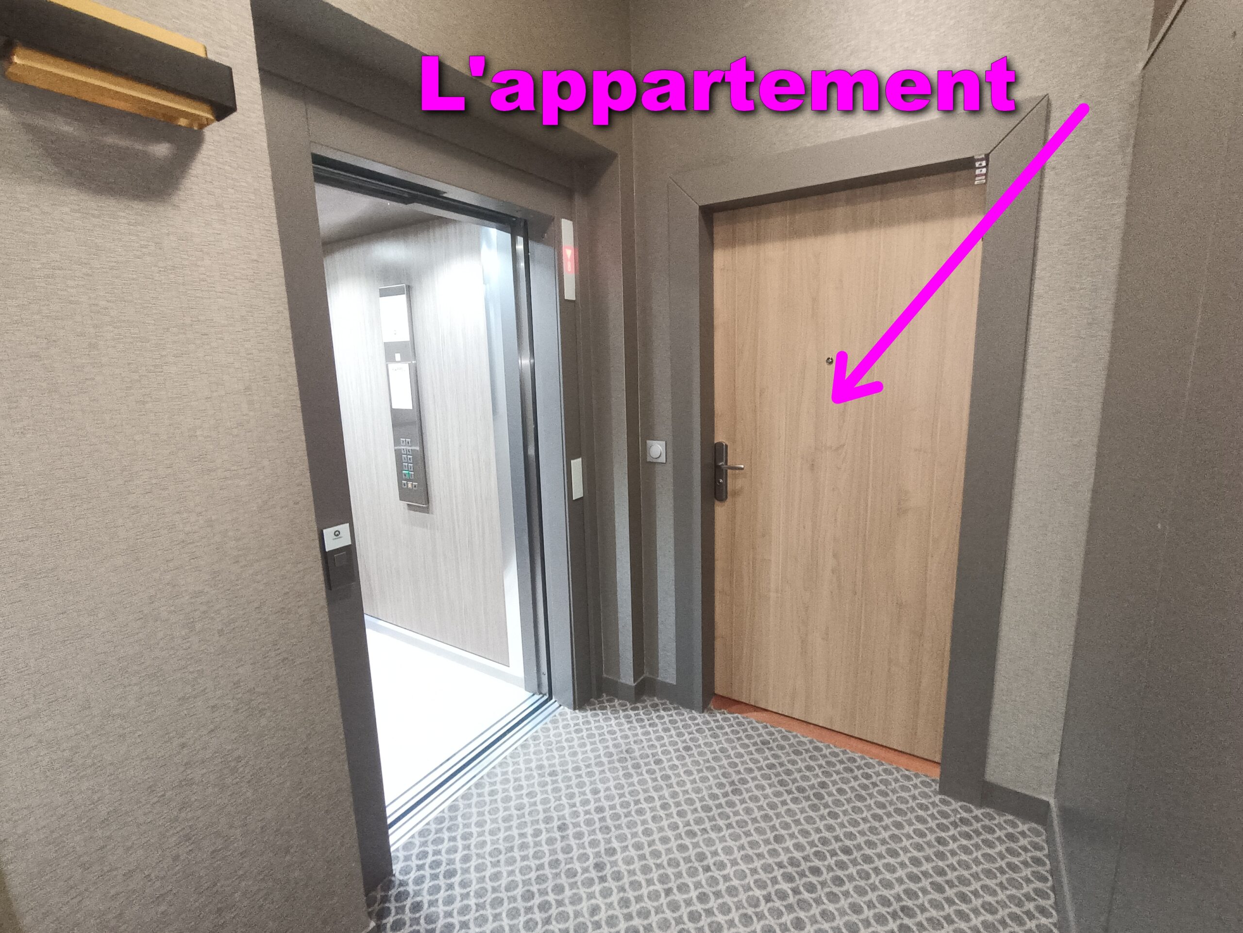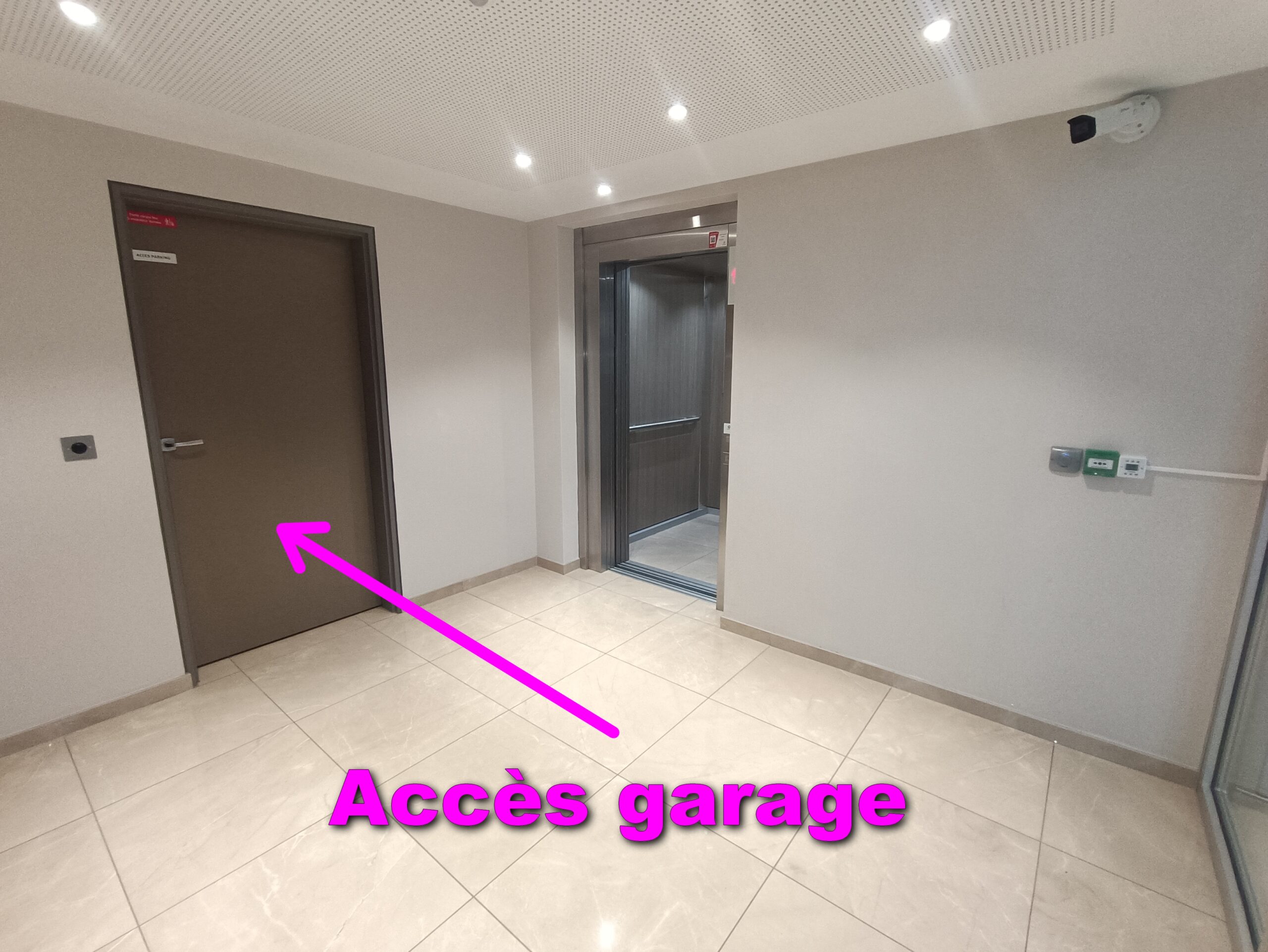 Si vous avez stationné votre véhicule dans le garage 🚗, vous arriverez par cette porte située à côté de l’ascenseur.