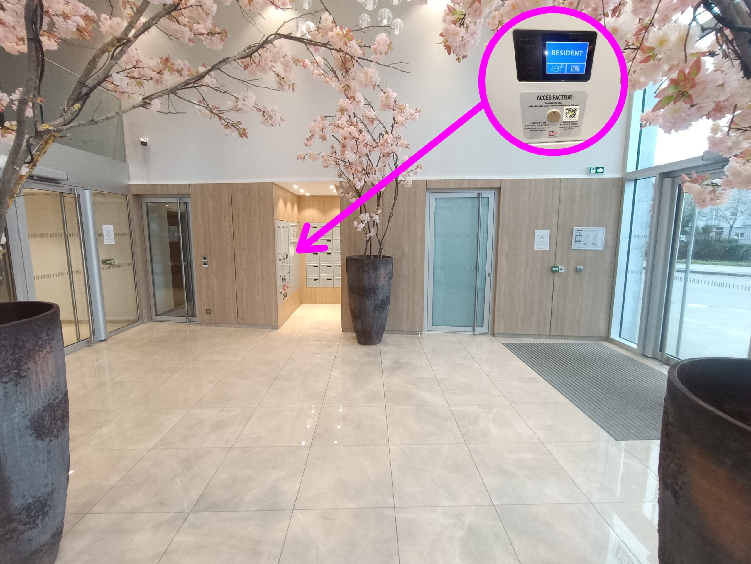 Lorsque vous arrivez dans le hall d’entrée, vous trouverez les boîtes aux lettres sur votre droite 📬.