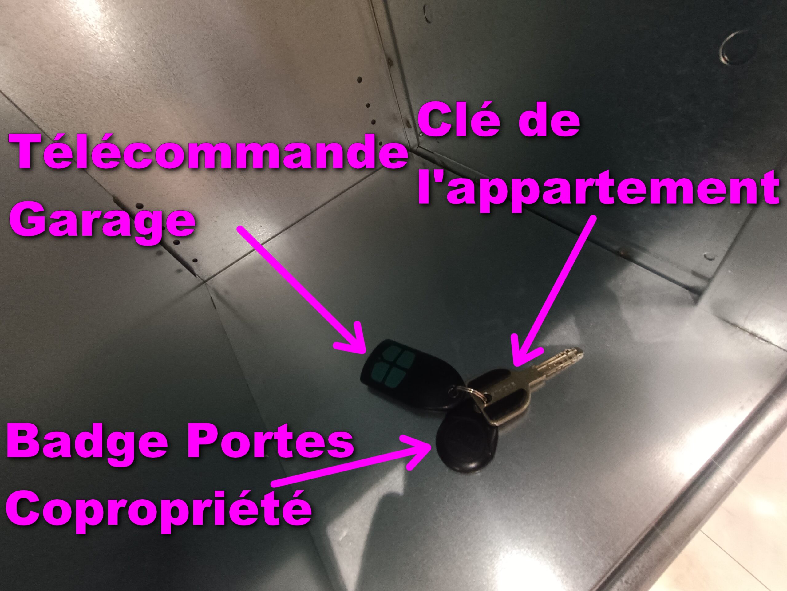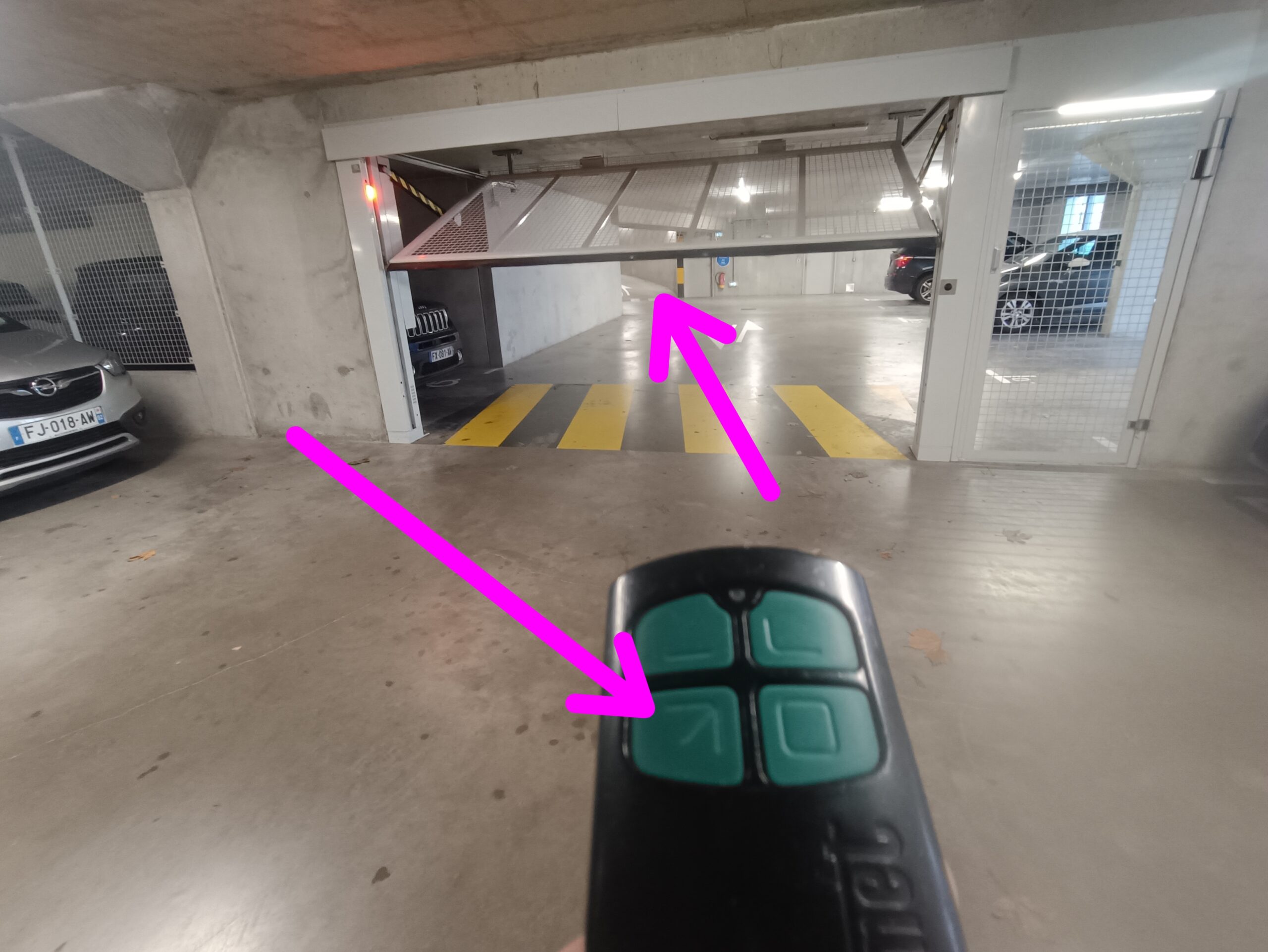 Commencez par récupérer la télécommande du garage, qui se trouve dans la boîte aux lettres située dans le hall d’entrée de l’immeuble 📬.