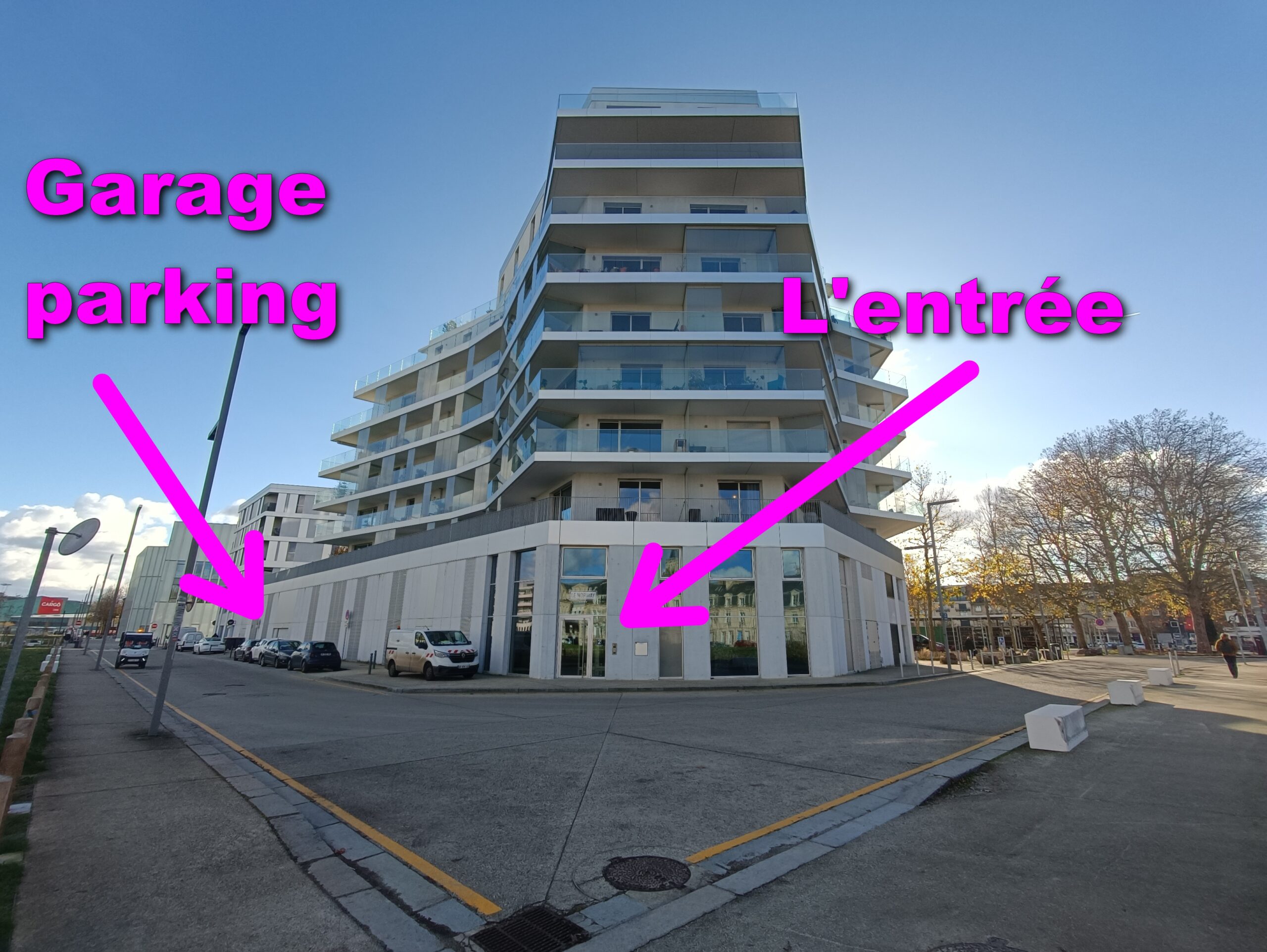 Voici la porte d’entrée de l’immeuble 🏢 ainsi que l’accès au garage pour le stationnement de votre véhicule 🚗.