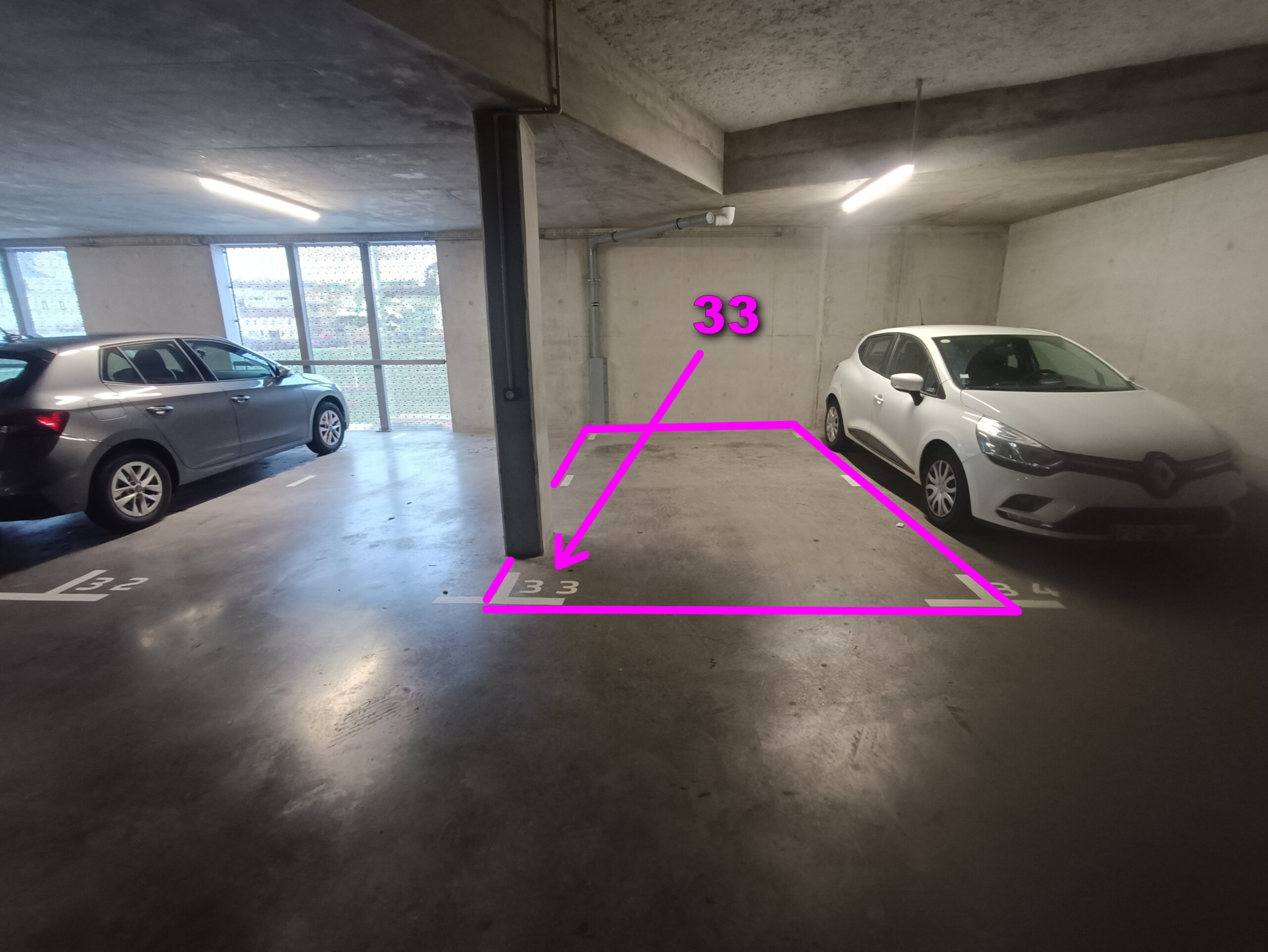 Votre place de stationnement est la n° 33 🅿️.