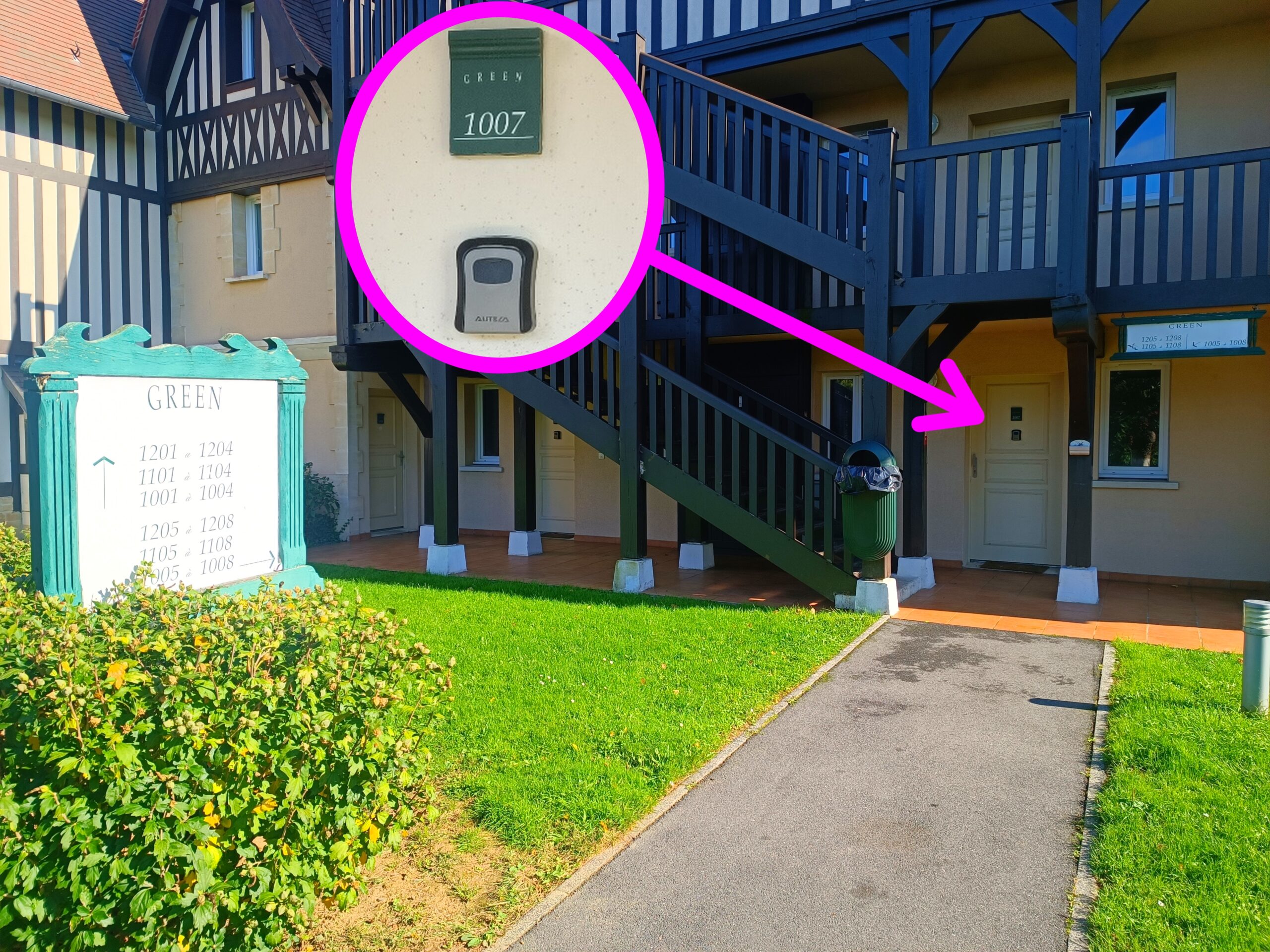 L’entrée du parking se fait par le 28 chemin de l’aumône 14800 Deauville